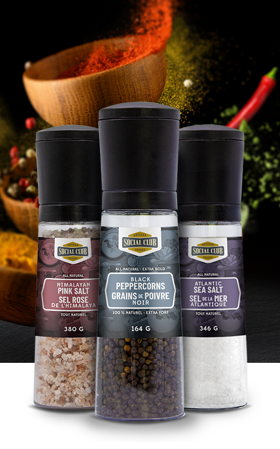 Spice up your meals with our diverse range of Social Club spices. Aromatic black peppercorn, gourmet salts, spicy garlic mix and mouth-watering BBQ blends, there is a spice for everyone. Our spices are the secret ingredient for creating a symphony of flavours to any dish and turning your ordinary meals into flavourful experiences.